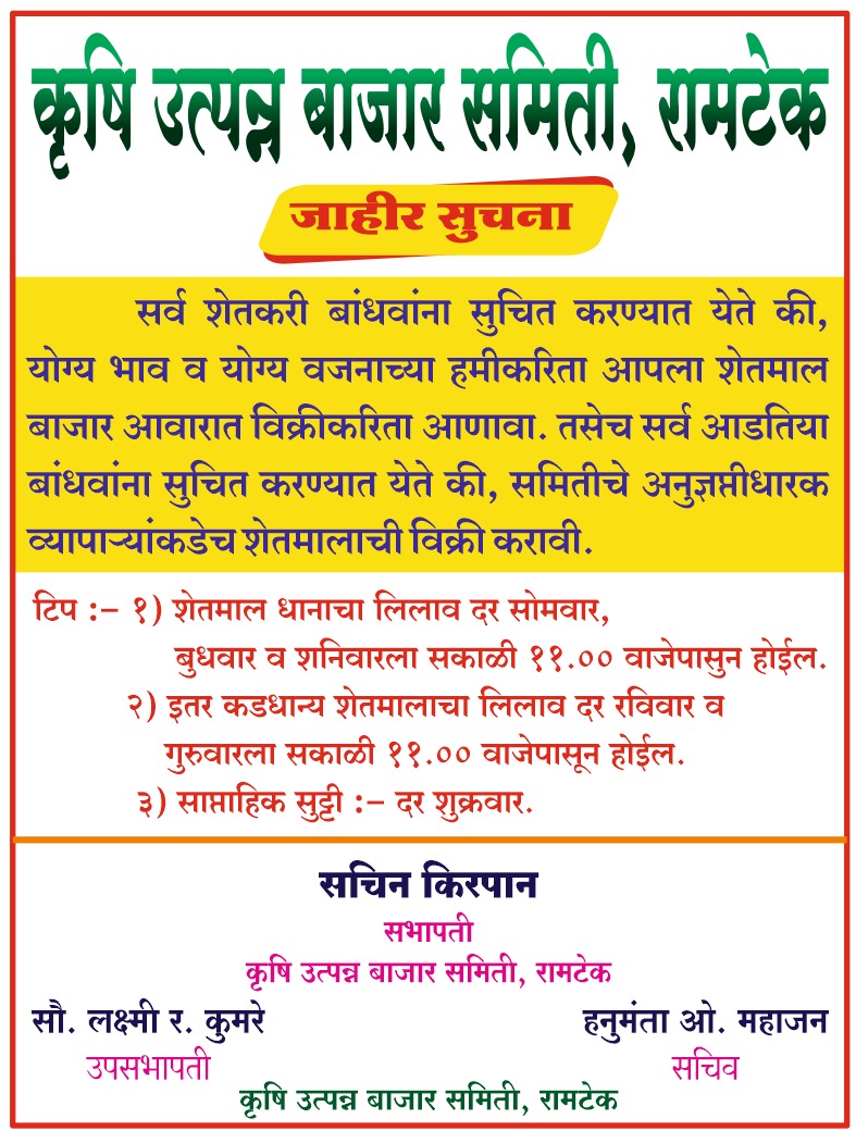 शेतमाल विक्री व वजन हमी संबंधी महत्त्वाची सूचना
