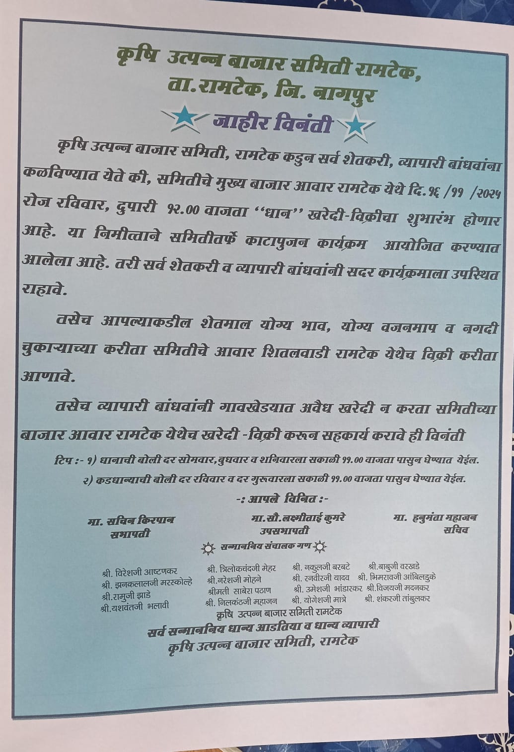 धान खरेदी-विक्री शुभारंभाविषयी महत्त्वाची जाहीर सूचना