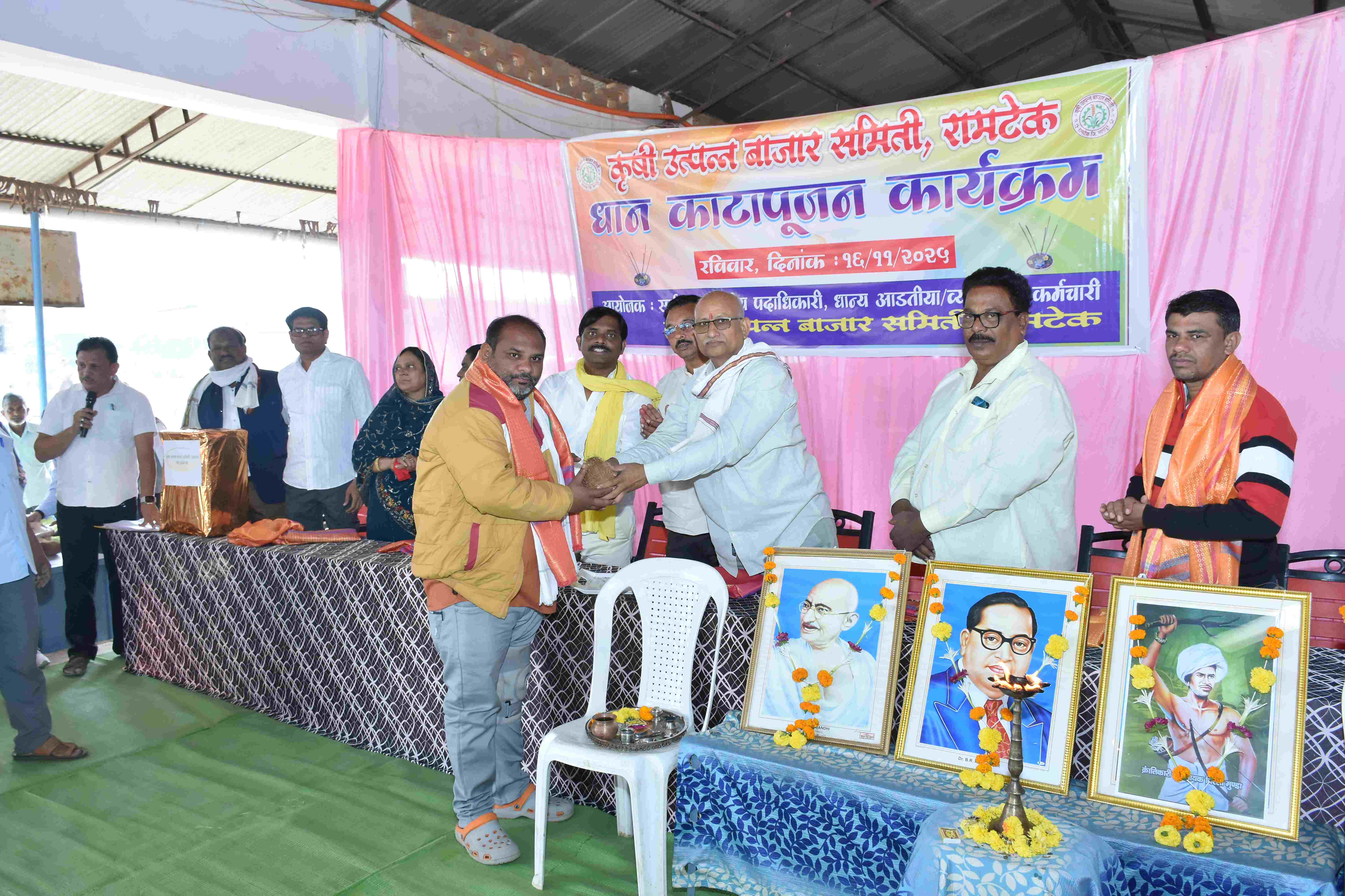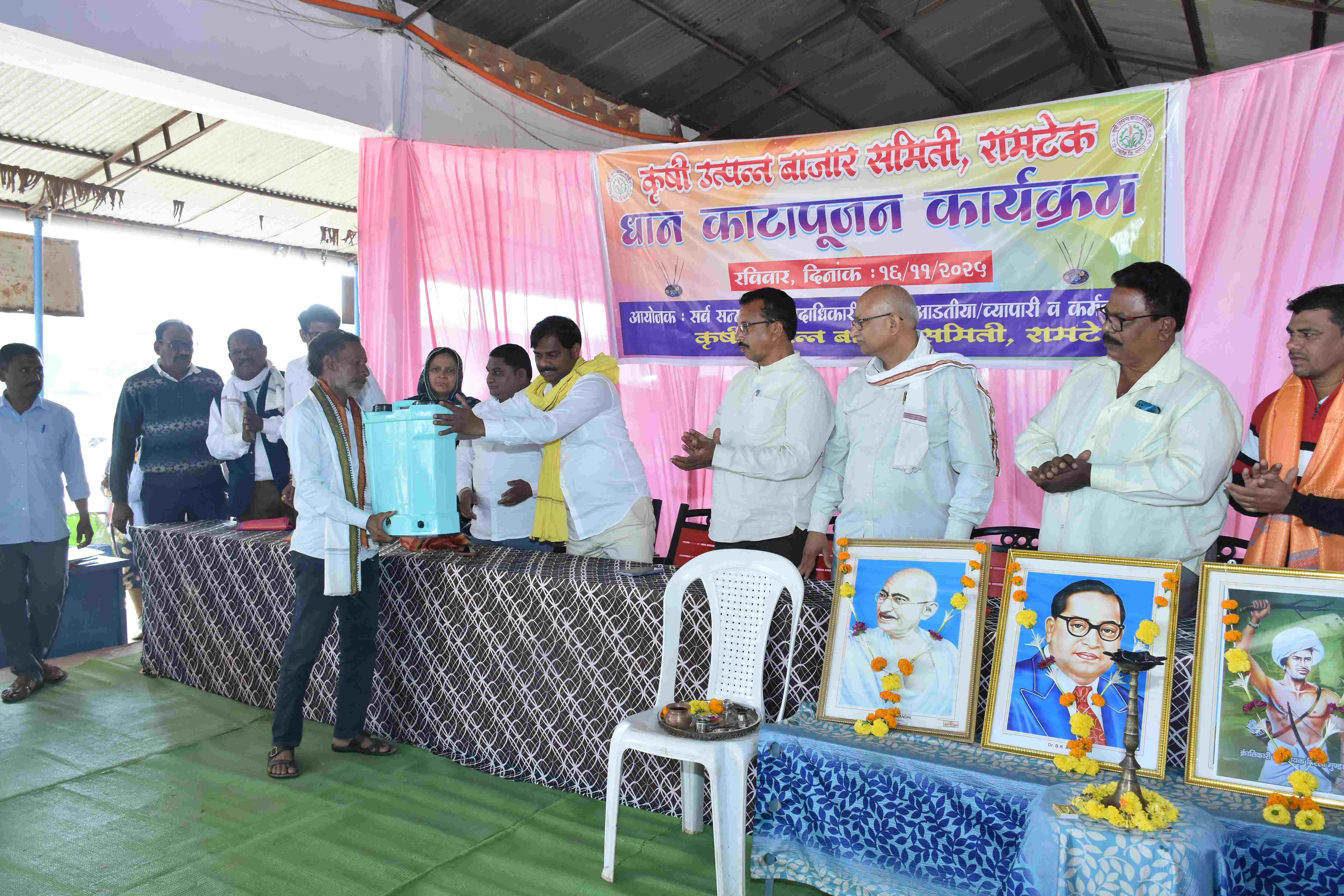 Lucky draw agricultural pump distribution, tiffin distribution, rice harvesting program