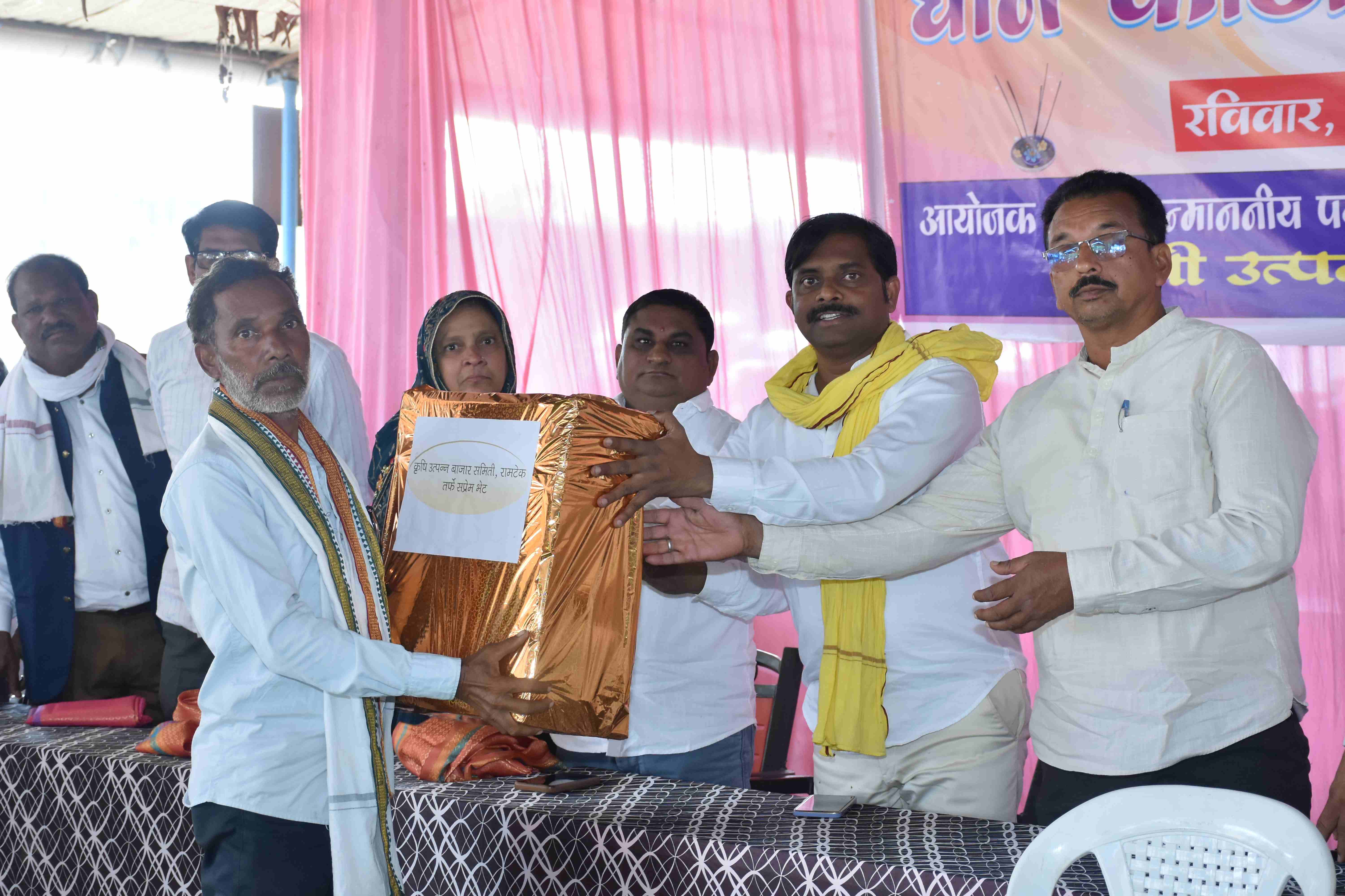 Lucky draw agricultural pump distribution, tiffin distribution, rice harvesting program